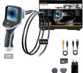 Profesjonalny system inspekcji wideo umożliwia inspekcje wizualne w trudno dostępnych miejscach, na przykład w rurociągach, wnękach ściennych i pojazdach silnikowych. Użytkownik ma łatwą orientację przestrzenną dzięki intuicyjnemu obracaniu jednostki bazowej. Dzięki efektywnemu oświetleniu obiektu diodami LED, znaczące obrazy mogą być wykonywane nawet w złych warunkach. Dzięki wiernemu odwzorowaniu kolorów uzyskuje się realistyczny obraz. Szczegóły można wyraźnie uchwycić za pomocą funkcji zoomu. Ergonomicznie zaprojektowane urządzenie wygodnie leży w dłoni i jest przyjemne w użyciu nawet podczas długiej pracy. Osiem dostępnych języków i wymienny moduł kamery zapewniają szeroki zakres zastosowań. Karta pamięci SD jest używana do dokumentacji, a interfejs USB-C do oceny zdjęć i filmów.