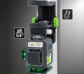 Profesjonalny laser krzyżowy 360° z zieloną wiązką – Laserliner PocketPlane-Laser 4G. Automatyczne poziomowanie, funkcja spadku, praca na akumulatorze i zasilaniu sieciowym. Zasięg do 30 m (80 m z odbiornikiem), dokładność ± 0,3 mm/m. Kompaktowy, lekki i niezawodny – niemiecka jakość i aż 4 lata gwarancji także dla firm.