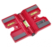 Ta poziomica posiada trzy libelle i jest szczególnie przydatna do dokładnego poziomowania słupów, rur i masztów. Posiada praktyczny zatrzask co 15° i cztery silne magnesy do mocowania na powierzchniach metalowych. Regulowany pasek pozwala na przymocowanie jej do powierzchni niemagnetycznych. Dzięki kompaktowej, składanej konstrukcji produkt ten zmieści się w każdej skrzynce narzędziowej.